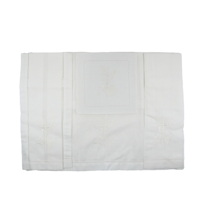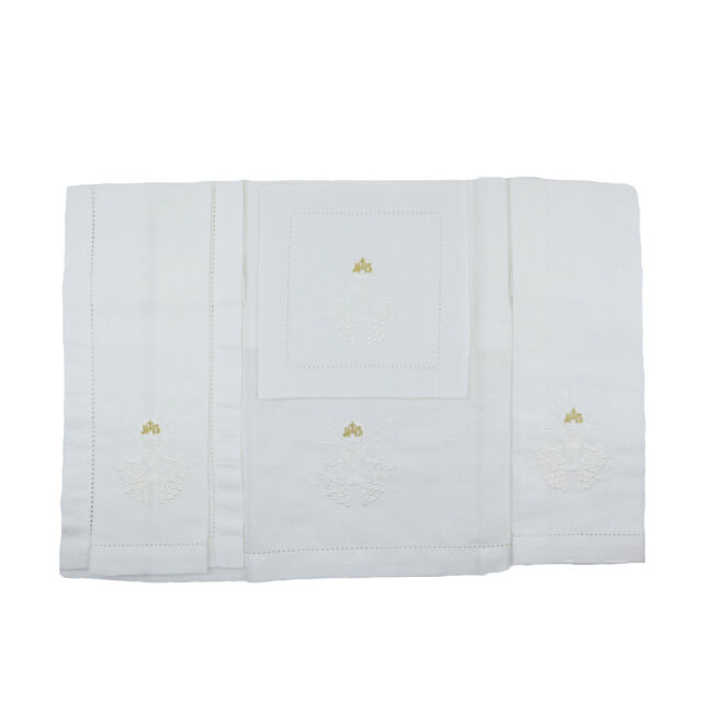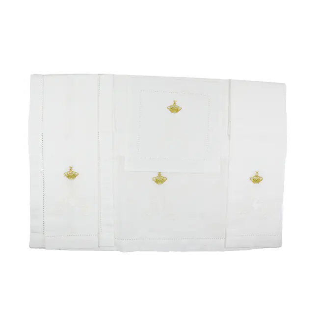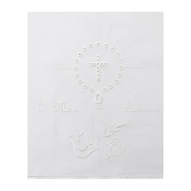Toalha batismo c/vela e concha. Bord branco (8232)
