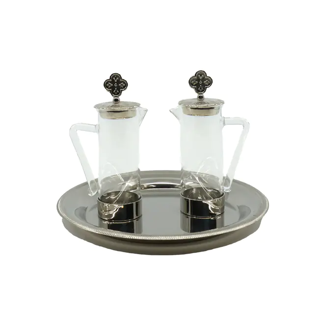 Galhetas de cristal c/ bandeja aros de metal