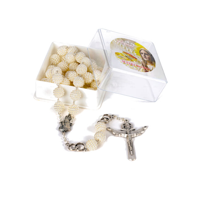 Terço Pérola Primeira Comunhão (5mm) c/ caixa