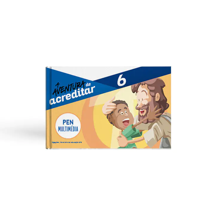 Uma pen que reúne os ficheiros vídeo e áudio sugeridos no "A Aventura de Acreditar" - 6º ano do Ligações.
