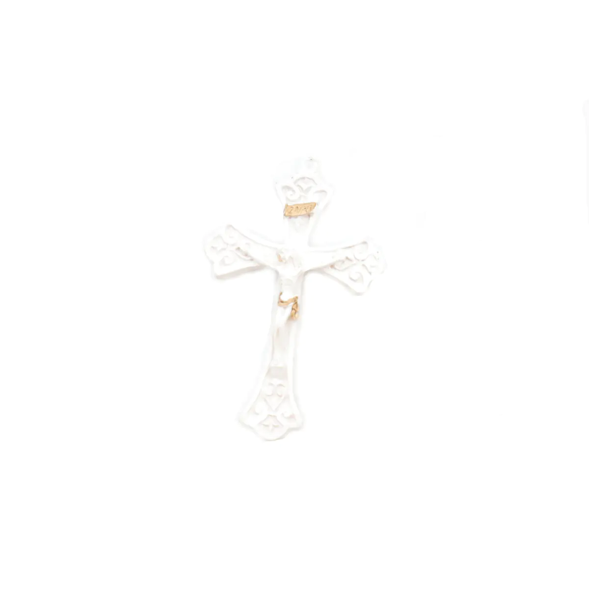 Cruz em gesso com apontamentos dourados