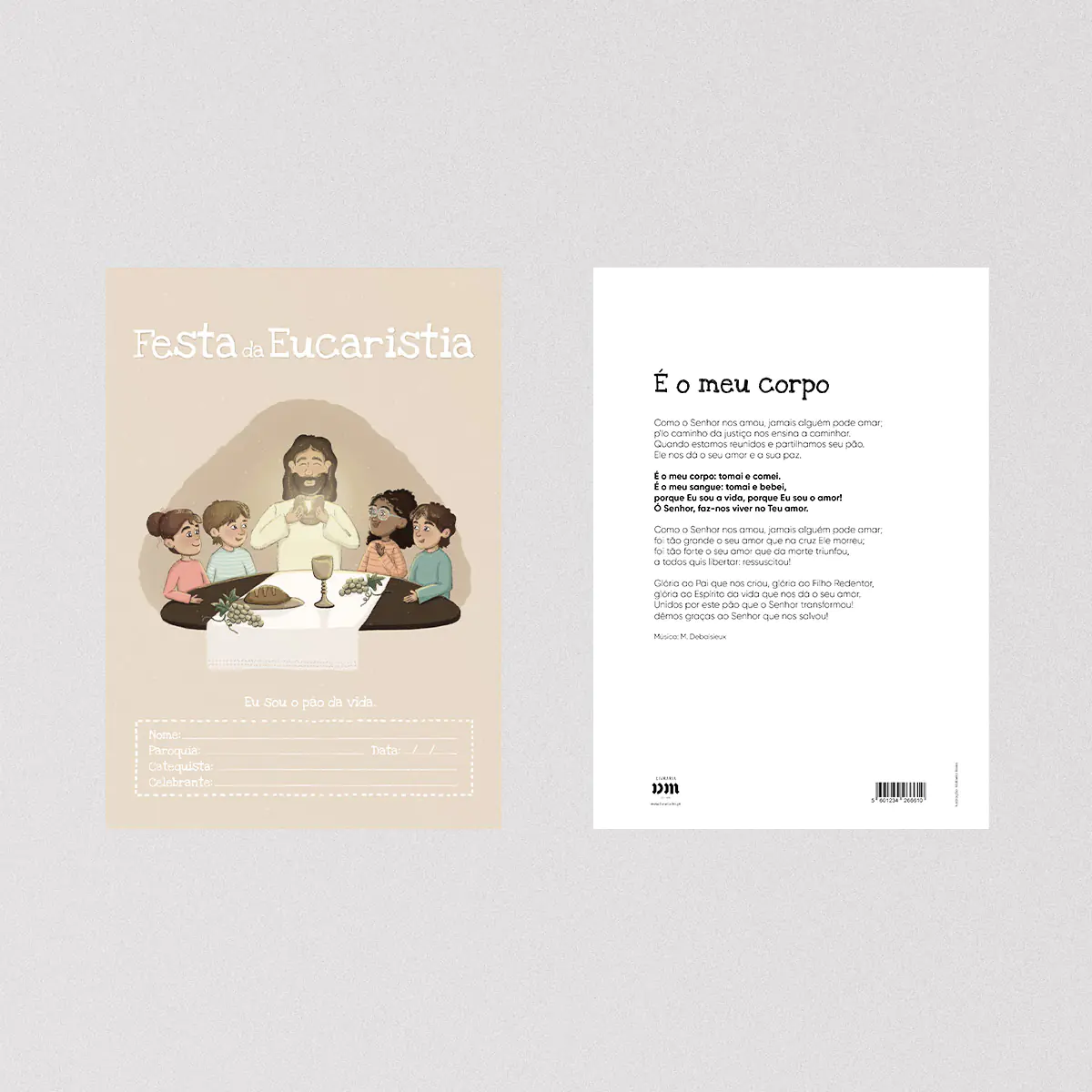 No verso, encontra-se a letra da canção “É o meu corpo” que ajuda a aprofundar o mistério da Eucaristia de forma simples e tocante.