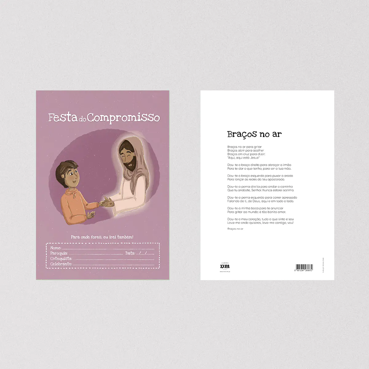 A ilustração mostra um gesto de entrega entre a criança e Jesus, acompanhado da frase: «Para onde fores, eu irei também!».