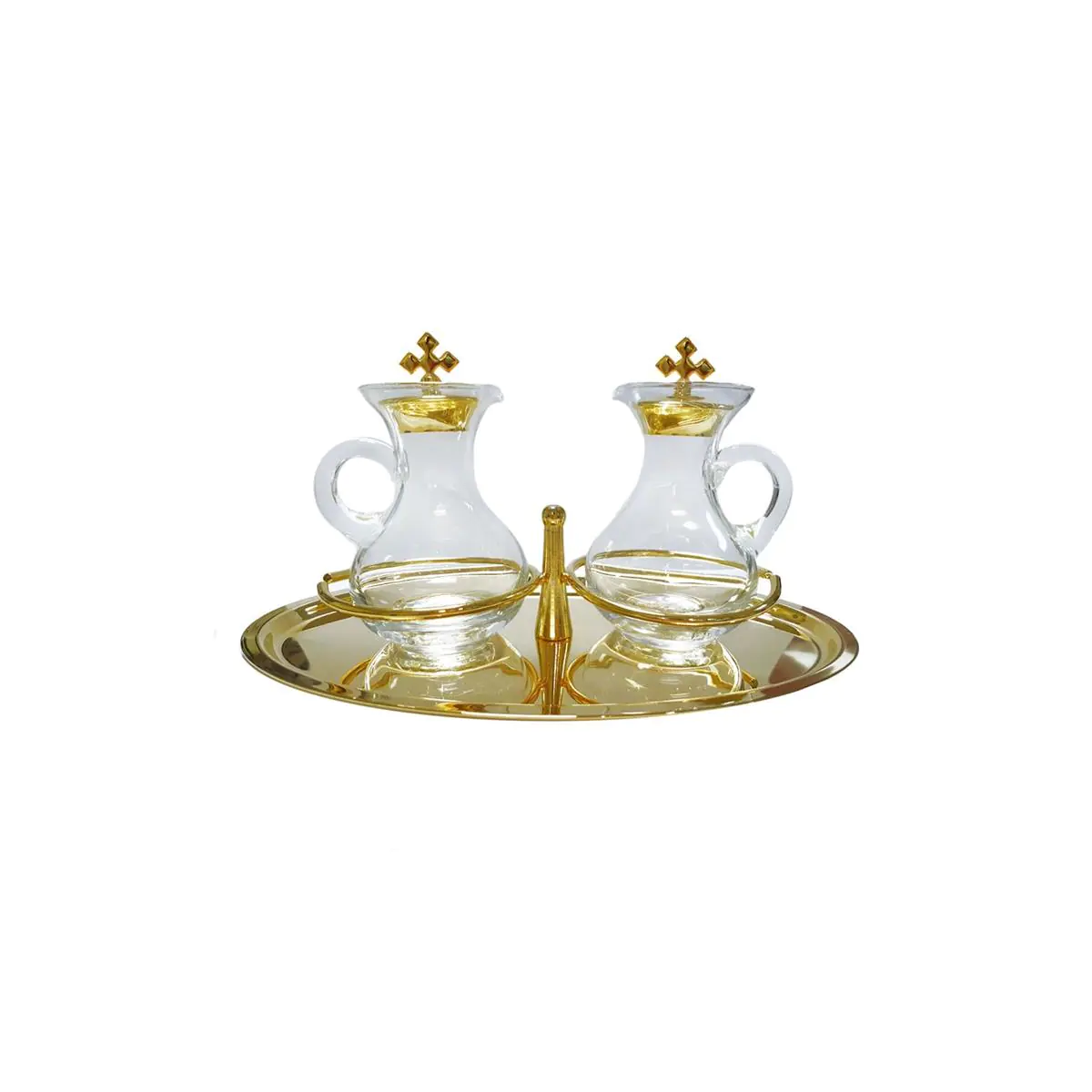 Galhetas de cristal c/ bandeja aros de metal