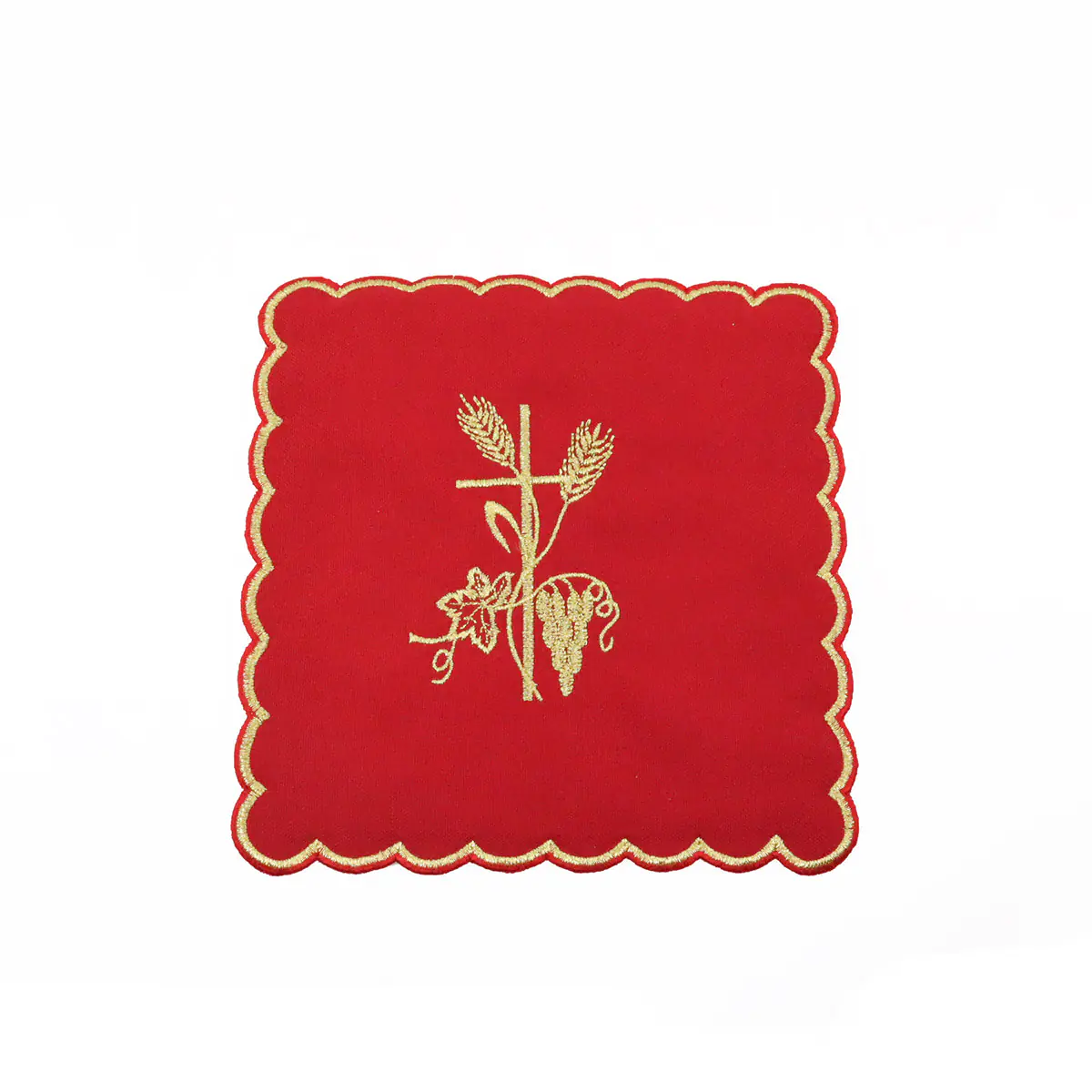 Pala para cálice com bordado em dourado espiga e uva em poliéster com cartão extraível.