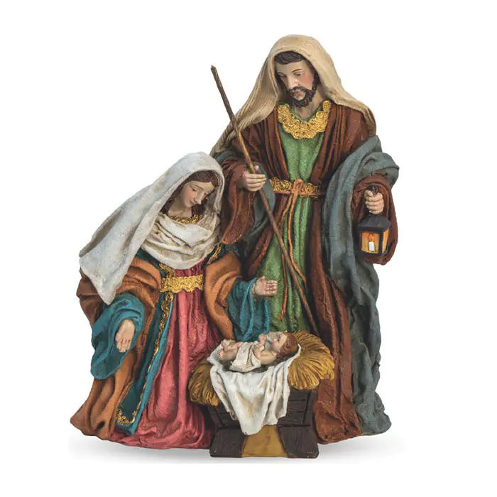 As cores ricas e o cuidado nas dobras das vestes conferem profundidade e elegância à cena, enquanto a lanterna de José e a atitude orante de Maria sublinham o clima de adoração e ternura. Uma peça que enriquece qualquer ambiente natalício e recorda a simplicidade e a luz do nascimento de Cristo.