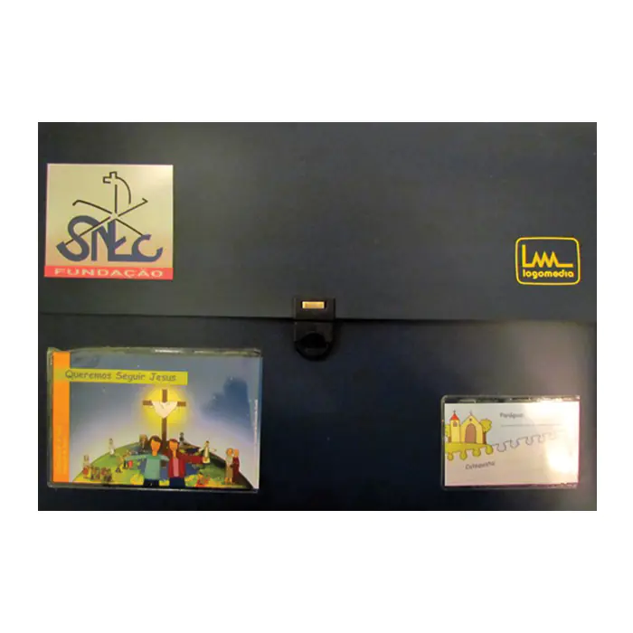 Contém, ainda, espaço de arrumação para o Guia do Catequista.