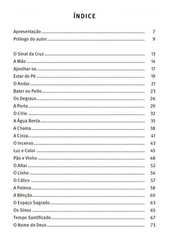 Esta publicação ou breves ensaios, como prefere chamar-lhe o próprio autor (cf. p. 10), ajuda-nos a fazer cada gesto, a olhar cada sinal, a experienciar cada símbolo, a rezar cada oração com maior profundidade e arte, e a percorrer o caminho da compreensão da Liturgia da Igreja de forma mais simples, bela e espiritual.
